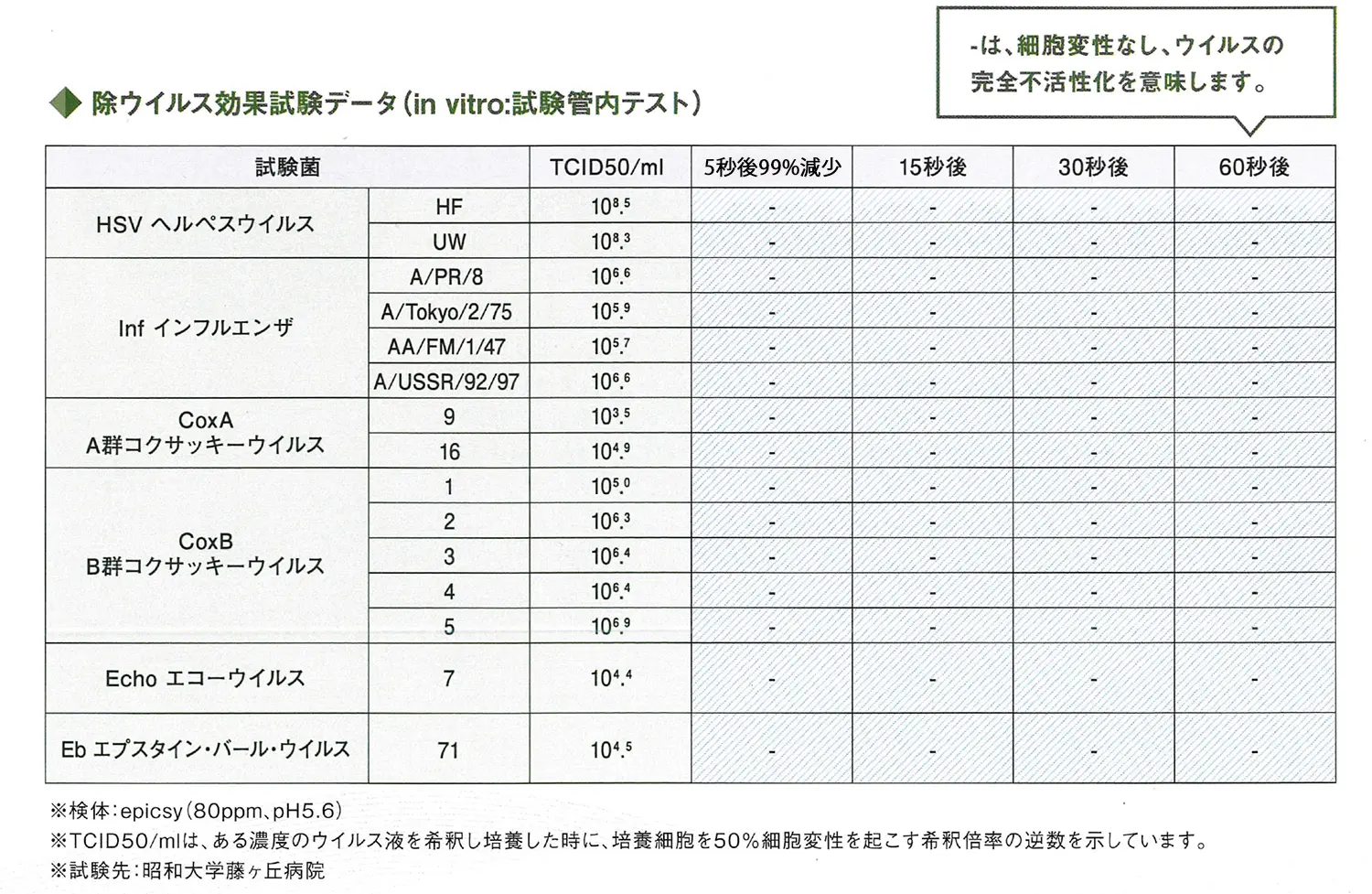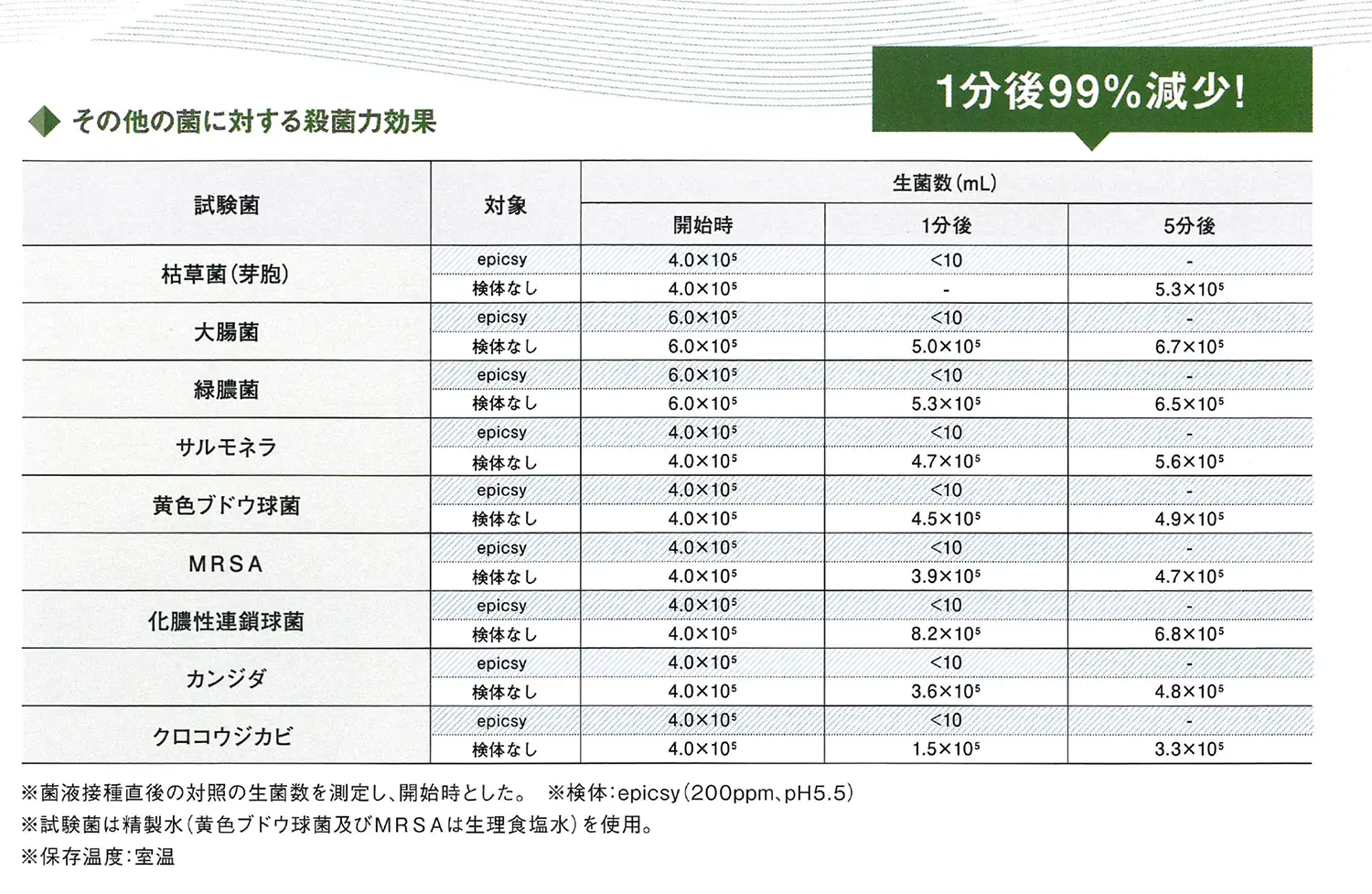 ウイルス・細菌等の幅広い感染源に対して、素早い除菌効果があります。